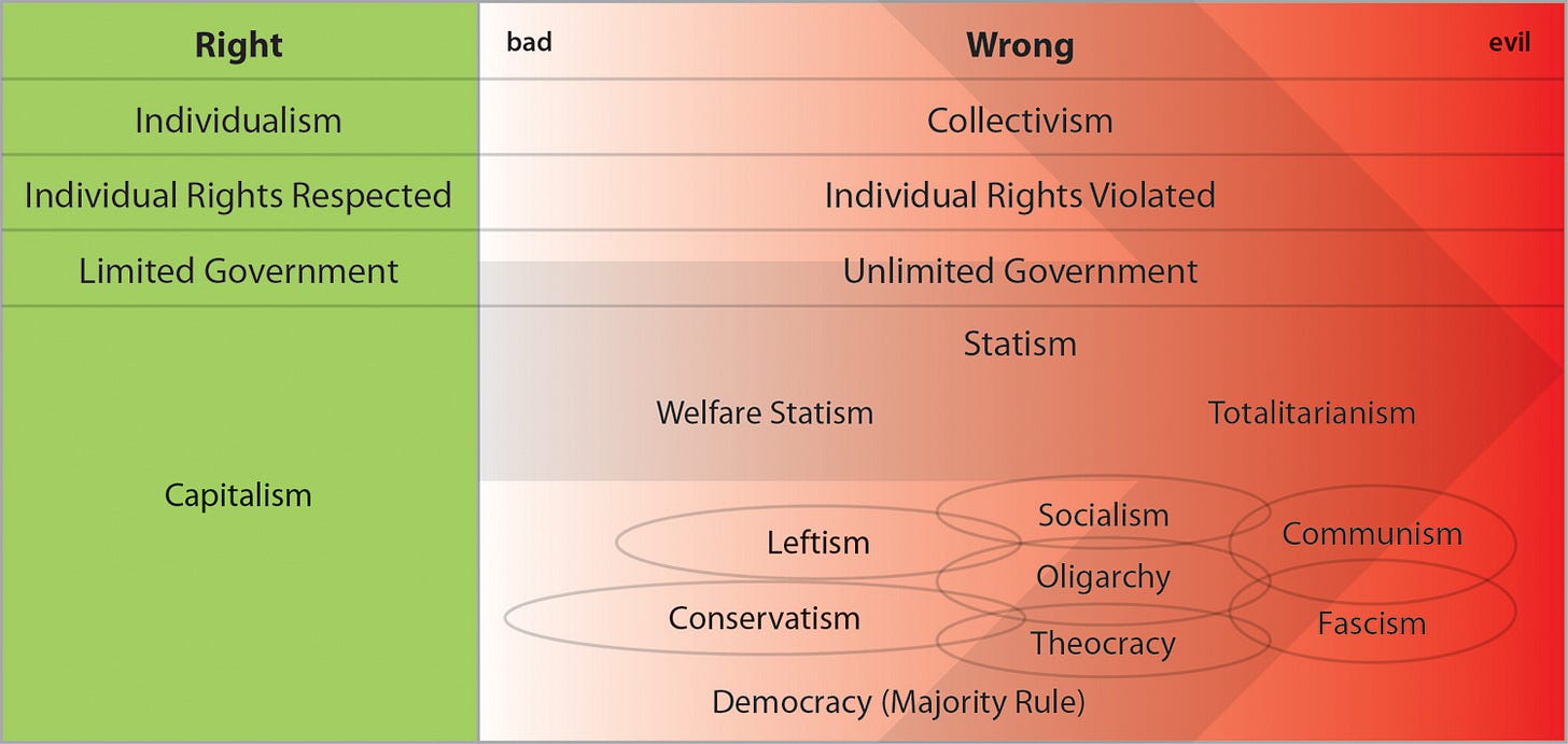 Grounded in core Enlightenment/Objectivist values—reason, rational self-interest, individualism, individual rights, limited government and capitalism—I look at current events through a lens of morally Right and Wrong instead of the traditional, political left and right: